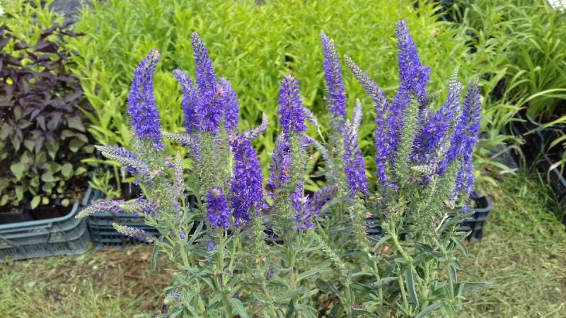 Tworzy darń srebrzystoszarych liści, a pędy kwiatostanowe wysmukłe, kłosowate ukazują się w VII-VIII i osiągają 30-40 cm. Kolor kwiatów intensywnie niebieski. Wymaga pełnego słońca gleby piaszczystej raczej suchej. Może być sadzony w ogrodzie skalnym. Rośliny w pojemnikach 1 l.